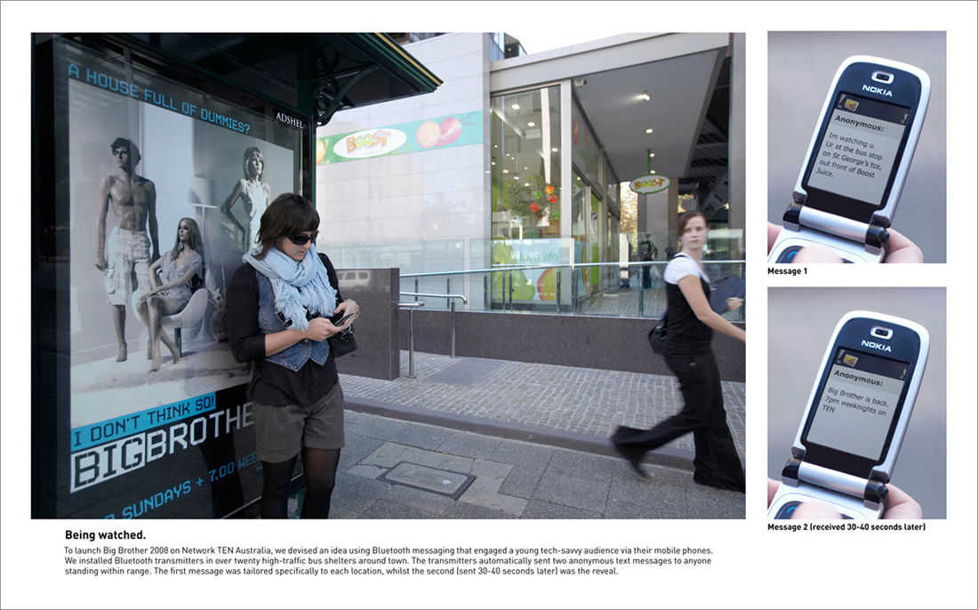 Anuncio de Marquesina que implementa el marketing móvil a través de bluetooth. Una excelente forma de contactar con tu target (jóvenes), y dejarlos impresionados. Seguro que además aumenta el flujo de gente gracias al boca-oreja.